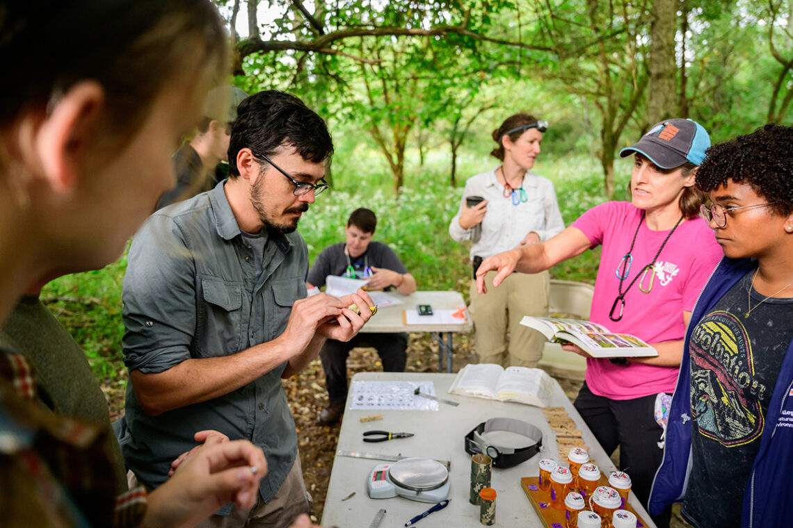 I arrive just before dawn at the U. of I.’s Phillips Tract, a former farm that is now a 130-acre natural area just east of Urbana and is used for scientific research and student training. I unlock the gate, park and gather the supplies I keep on site. Then I wait for the volunteers to arrive. The team today is a dedicated mix of staff, graduate students and undergraduates – all of whom are committed to helping capture, band and monitor the birds that use this site.