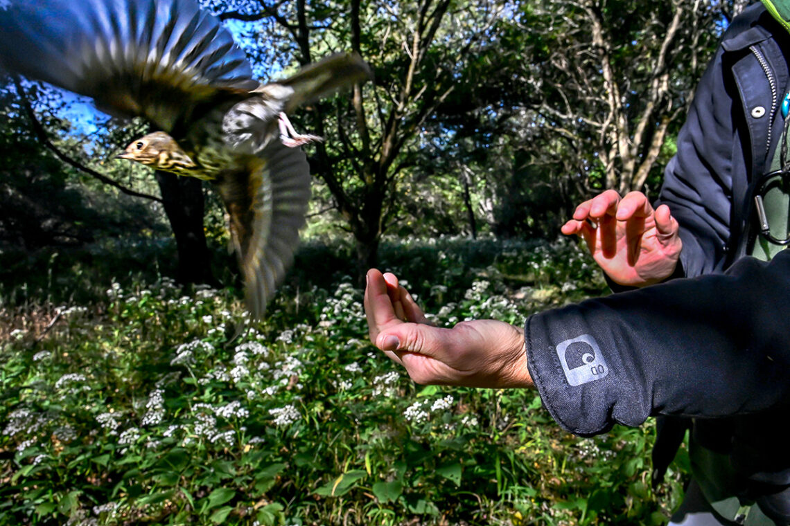 I pass the bird to a student. She opens her hand and the warbler takes off with a burst and a “chip.” It will spend the rest of its day foraging and packing on fat to prepare for the next leg of its journey south.