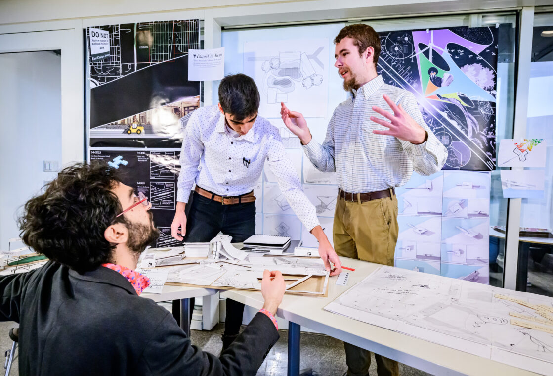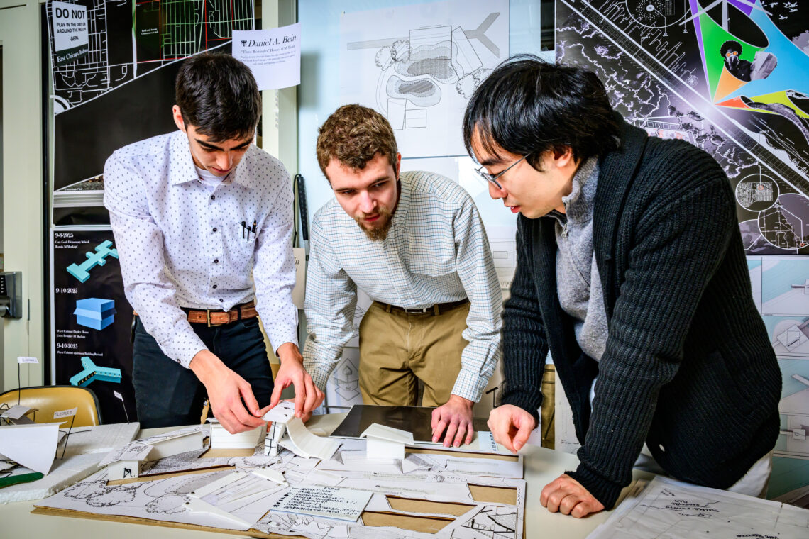 Architecture professors John Clark and Hugh Swiatek teach design studio classes. Their inspiration for transforming the educational experience for blind and low-vision students comes from their work with Daniel Bein, a sophomore architecture student from Fisher, Ill., who is legally blind.