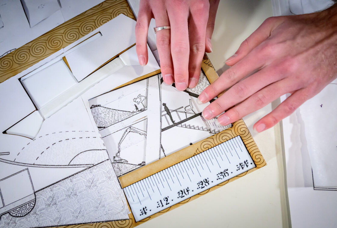 Bein and Anderson used a variety of tools to develop and refine their project, including an adjustable 3D-printed model that helped them to decide the placement of canals and buildings on the site. They applied a mix of tactile techniques from the research including Python-scripted computer models output to 3D prints, swell paper, traditional wire and chipboard models, and drawings made with a 3D pen. Bein said the process of drawing and revising the design was considerably faster than other methods he’s been using.