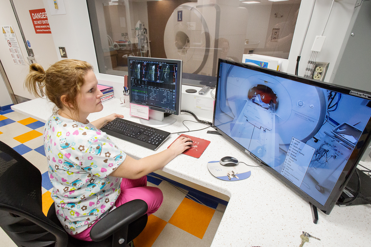 U. of I. veterinarians, including Devon Hague, anticipate many benefits of using the 3-Tesla MRI. Specifically, the scanner provides higher-resolution images and performs more quickly than previous models.
